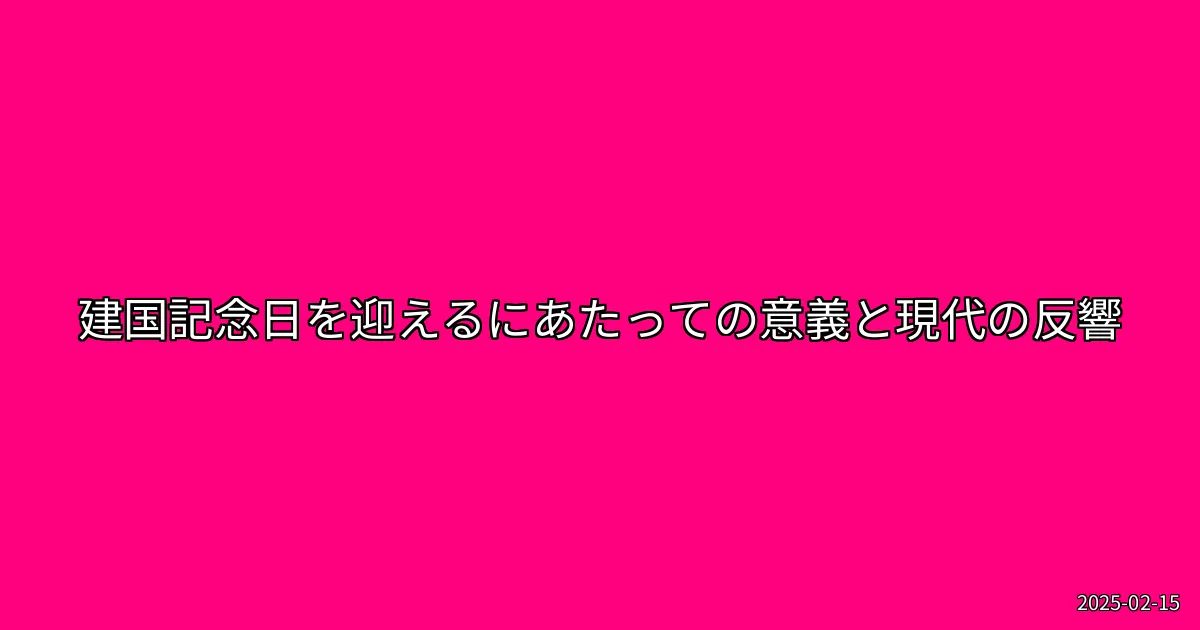 建国記念日を迎え、私たちは国の成り立ちや歴史について再考する良い機会です。今後も多様な視点から日本のアイデンティティを考えていくことが求められています。