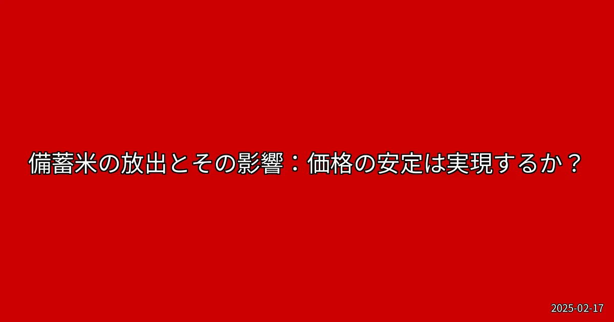 2025年2月15日、備蓄米に関する大きな動きが報じられました。政府が21万トンの備蓄米を放出する方針を発表したのです。この決定は、特に高騰する米の価格に対する消費者や飲食店、大手流通業者からの期待を受けたものであり、今後の市場にどのような影響を及ぼすのか、多くの関心が寄せられています。