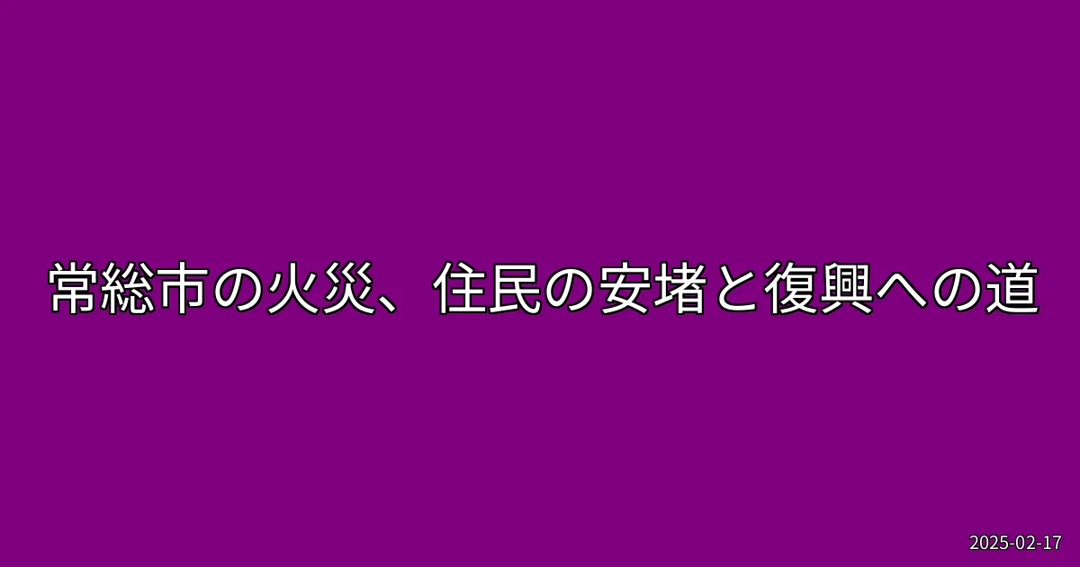 このような火災が再び発生しないよう、常総市の防災対策や地域の意識向上が求められています。