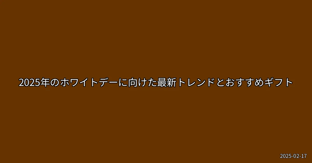 ホワイトデーが近づいてきました。毎年、バレンタインデーのお返しとして、さまざまなギフトが選ばれるこの特別な日。2025年のホワイトデーは、どんな商品やイベントがトレンドとなるのでしょうか?最近のニュースからも、ホワイトデーに関連する魅力的な情報が続々と入ってきています。今回は、ホワイトデーのトレンドやおすすめのギフト、そして注目のイベントについてご紹介します。