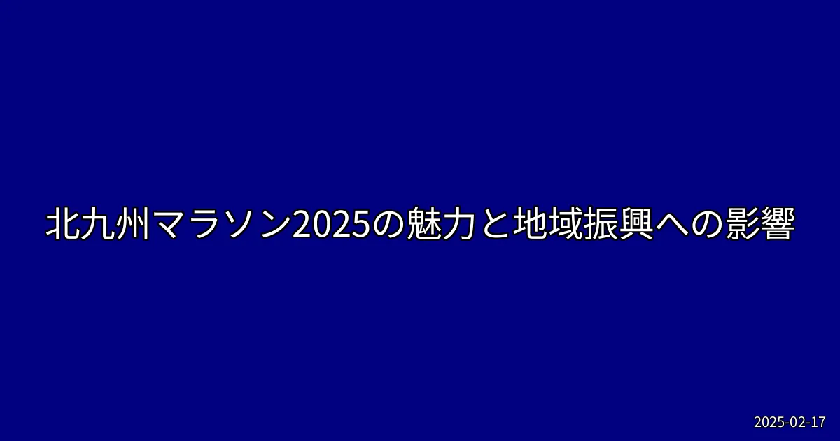北九州マラソン2025は、地域の活性化や健康促進の側面からも非常に重要なイベントです。多くのランナーや観客が集まり、地域全体が盛り上がる様子は、マラソンの魅力をさらに引き立てています。今後の展開にも注目し、ぜひ参加してみてください。