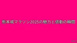 今後の熊本でのイベントやマラソン情報に目が離せません。多くの人々が集まり、熊本の魅力を体験するこの機会を是非お見逃しなく。