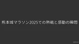 熊本城マラソン2025:歴史ある舞台での熱き戦い
