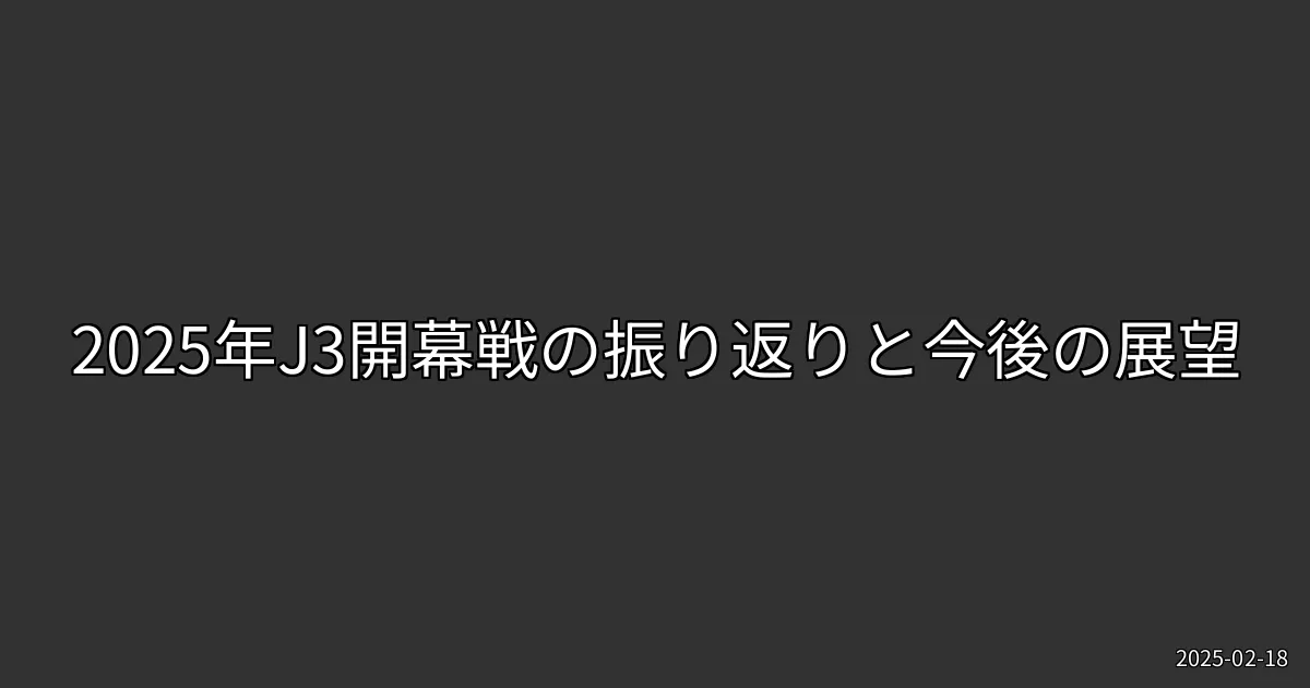 2025年のJ3リーグは、開幕戦から多くのドラマを生み出しました。各チームがどのように成長し、ファンを楽しませてくれるのか、今後の試合に期待が膨らみます。次回の試合では、さらに熱い戦いが繰り広げられることでしょう。ぜひ、皆さんもスタジアムに足を運んで、応援の輪を広げていきましょう。