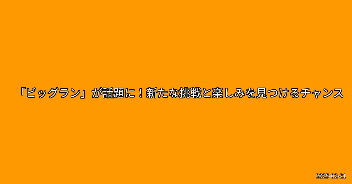 「ビッグラン」が話題に!新たな挑戦と楽しみを見つけるチャンス