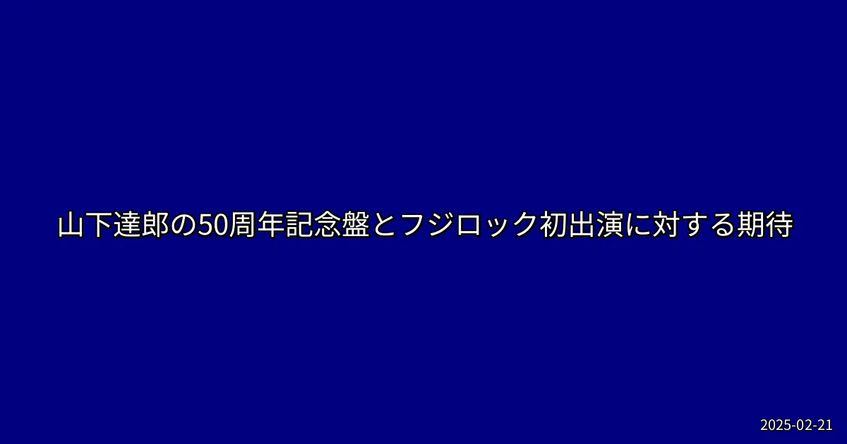 2025年2月21日、音楽界のレジェンドである山下達郎が再びトレンド入りしました。その理由は、彼のデビュー50周年を記念したアルバム『SONGS 50th Anniversary Edition』のリリースと、フジロックフェスティバルへの初出演が発表されたことにあります。今回のアルバムには、36年ぶりとなるライブ作品がボーナスディスクとして収録されることが決定し、多くのファンが期待を寄せています。