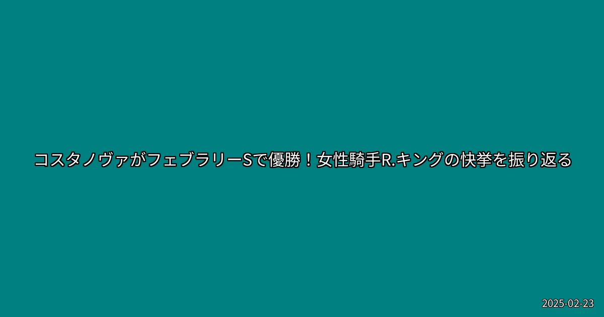 2025年2月23日、コスタノヴァがフェブラリーSで優勝し、女性騎手R.キングが平地G1初勝利を達成したことで、競馬界に新たな歴史が刻まれました。コスタノヴァの今後の活躍と、女性騎手のさらなる躍進に期待が寄せられています。詳しい情報は、競馬関連のニュースサイトで随時チェックしてください。