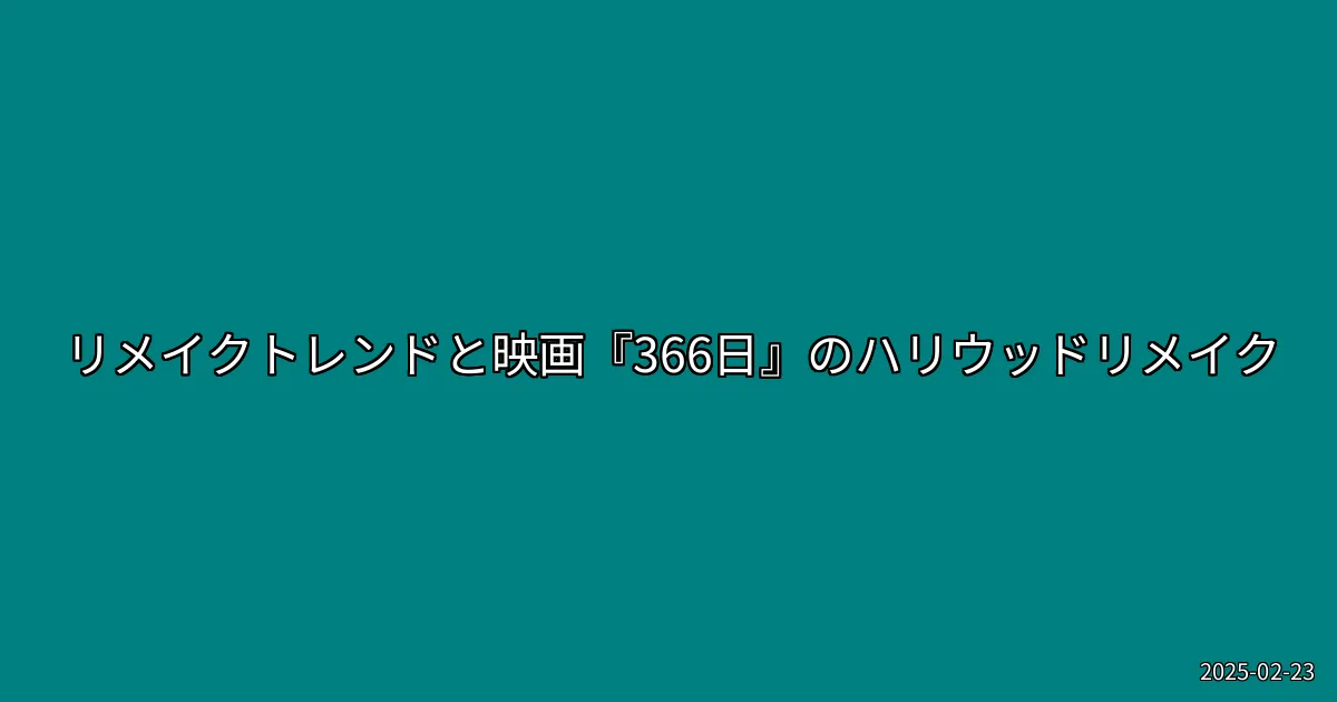 近年、様々な分野でリメイクのトレンドが盛り上がっています。特にエンターテインメント業界では、過去の名作や人気作品を新たな形で生まれ変わらせるリメイクが注目されています。2025年2月22日、映画『366日』がハリウッドでリメイクされることが決定し、興行収入が20億円を突破したというニュースが飛び込んできました。このようなリメイクの流れは、なぜここまで強まっているのでしょうか?