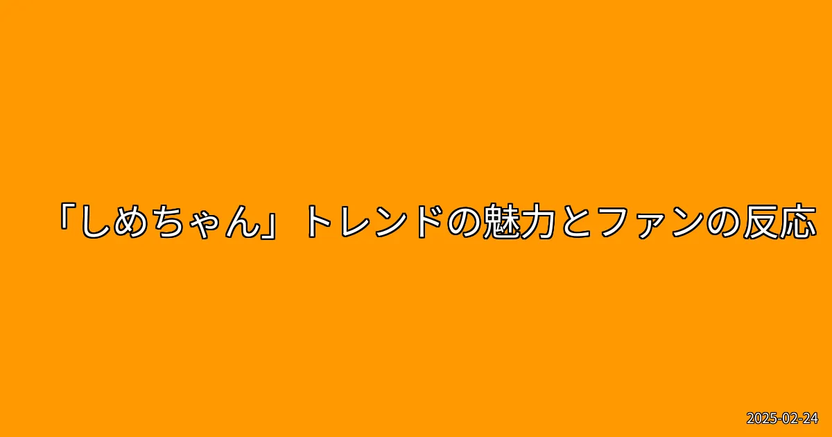 2025年2月24日、トレンドワード「しめちゃん」がTwitterのトレンド入りし、多くのファンがその名前を口にしています。特に、Travis Japanの七五三掛龍也さんが話題の中心となっており、彼の魅力に惹かれるファンが続出しています。今日はこの「しめちゃん」に焦点を当て、その人気の理由や関連するニュースをお伝えします。