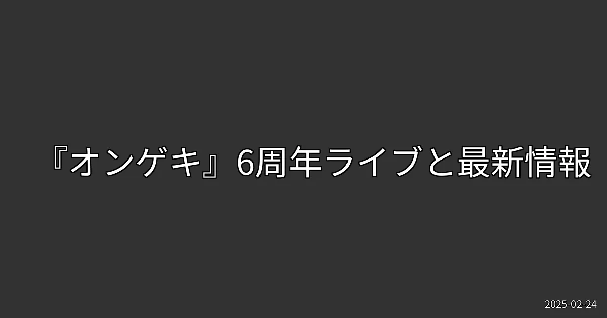 2025年2月24日、音楽ゲーム『オンゲキ』が再び注目を集めています。本日は、2年ぶりのワンマンライブ「オンゲキ 6th Anniversary Live ~Individual on parade!~」のオフィシャル先行チケット受付がスタートしたことを受けて、最新のニュースやイベント情報をご紹介します。