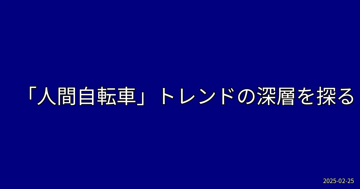 また、生成AIが自転車に関連する情報を適切に処理できない理由についての考察もあります。自転車はシンプルな機械でありながら、その背景には複雑な人間心理や文化が影響しています。このような点からも、「人間自転車」のトレンドは、ただの流行にとどまらず、より深い意味を持つことが分かります。