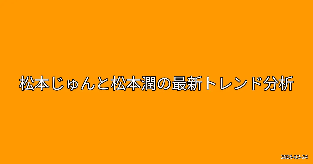 2025年2月24日、松本じゅんという名前がトレンドに入ったことが話題となりました。このトレンドは、彼に関する最近のニュースや動向に密接に関連しています。特に注目されるのは、松本潤が出演する舞台や映画、さらには彼自身のプライベートに関する情報です。