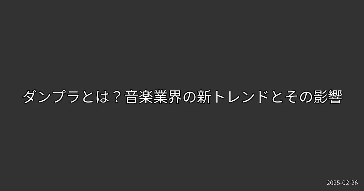 2025年2月26日、音楽界では「ダンプラ」という言葉が話題になっています。特に、人気グループのAぇ! groupやBE:FIRST、Snow Manなどが新たに公開したダンプラ映像が注目を集めています。では、この「ダンプラ」とは一体何なのか、その背景や影響について考察してみましょう。