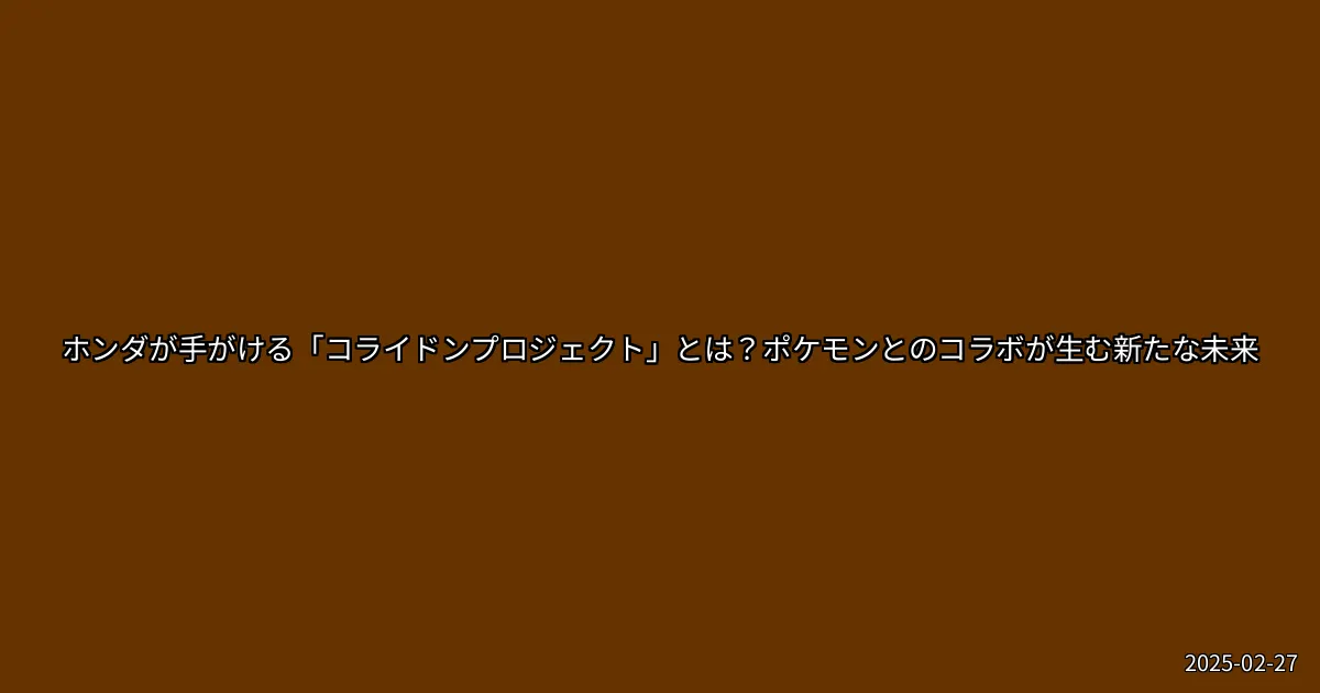 2025年2月27日、ホンダが発表した「ホンダコライドンプロジェクト」が注目を集めています。このプロジェクトでは、人気のポケモン「コライドン」をテーマにした二輪車が開発されることが明らかになりました。ホンダがどのようにコライドンを再現し、またどのような新しい体験を提供するのか、詳細を見ていきましょう。