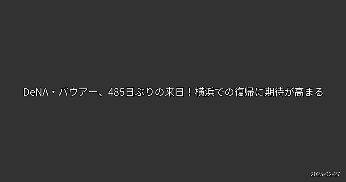 DeNA・バウアーの485日ぶりの来日を受け、彼の復帰に対する期待が高まっています。横浜の町での新たな挑戦に向け、ファンとともに成長していく姿が楽しみです。今後の試合での活躍を心待ちにしましょう。