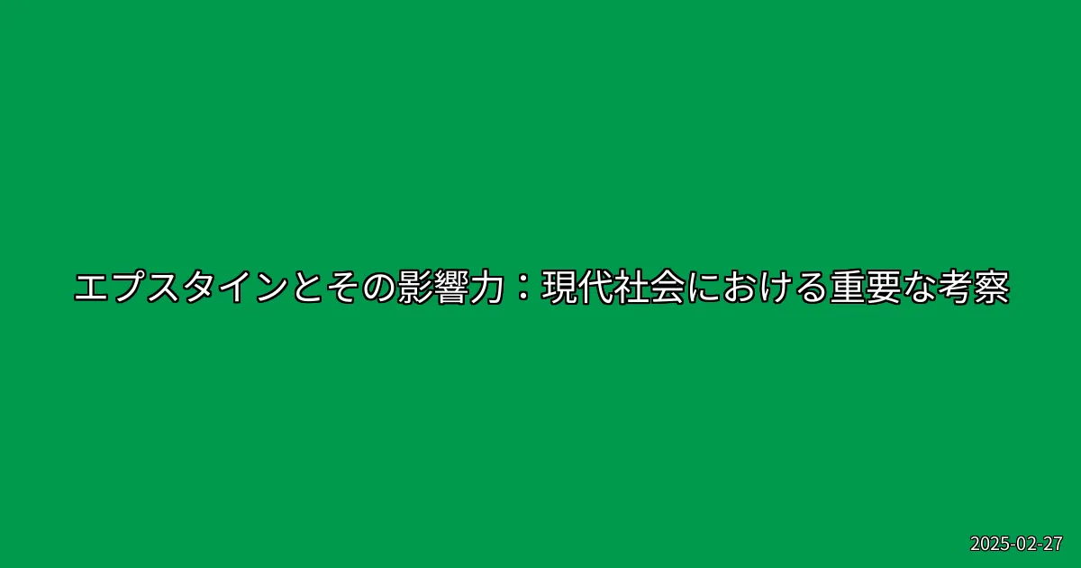 このように、エプスタインに関する様々な側面を理解することで、現代社会における権力の構造や人間関係の複雑さをより深く把握することができるでしょう。