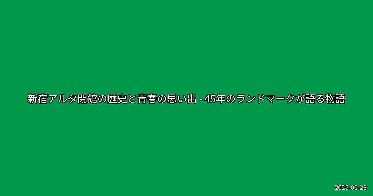 2025年2月28日、新宿アルタが45年の歴史に幕を閉じました。この場所は、東京・新宿のシンボルとして多くの人々に親しまれ、青春の思い出が詰まった場所でもあります。特に、タモリさんが司会を務めた「笑っていいとも!」の放送が行われたことでも知られています。