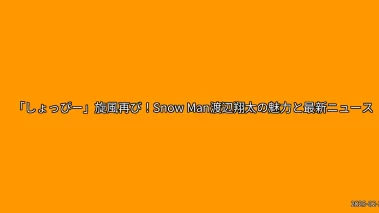 「しょっぴー」旋風再び!Snow Man渡辺翔太の魅力と最新ニュース