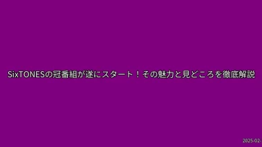 トレンド SixTONESの冠番組が遂にスタート!その魅力と見どころを徹底解説 SixTONESの初の冠番組「Game of SixTONES」が放送され、ファンの期待が高まっています。 2025.02.23 トレンド